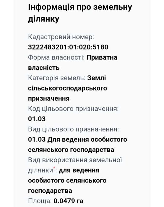 | Земельна ділянка: |