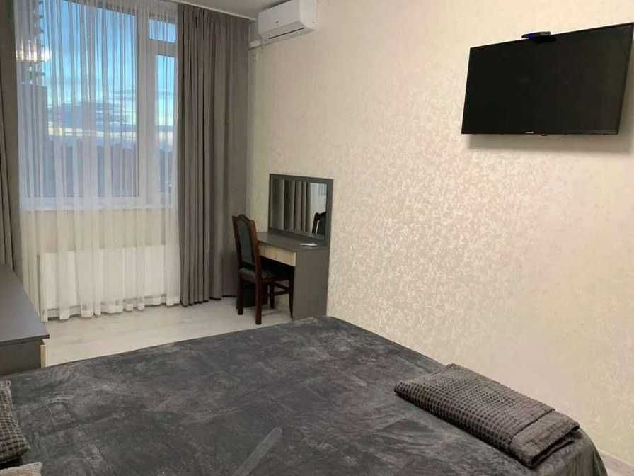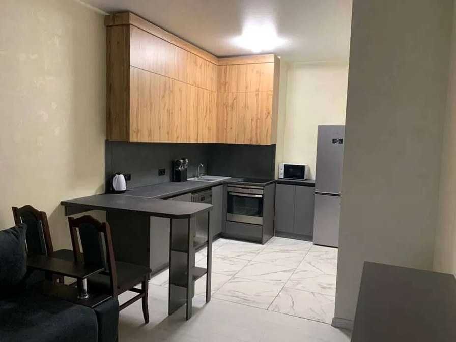 Шевченківський; Оренда 1-кімнатної квартири, просп. Берестейський, 12; Перша здача. Планування: окрема спальня, кухня-студія з лоджією, суміщений санвузол. Повністю мебльована, укомплектована всією необхідною технікою: бойлер, пральна та сушильна машини, посудомийна машина, мікрохвильова піч, чайник, духова шафа, індукційна варильна поверхня, утюг, пилосос, кондиціонери в кожному приміщенні. Є необхідний посуд. Встановлені індивідуальні лічильники на воду, опалення та електроенергію. Під час відключень електроенергії функціонують опалення, вода та ліфти. У будинку 5 ліфтів, на 5 поверсі — тераса з дитячим і спортивним майданчиком. На території — кафе, салон краси, продуктовий магазин, квітковий, відділення Нової пошти, фітнес-студія. Є паркінг.