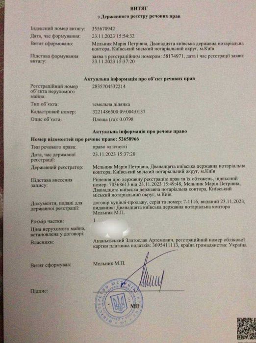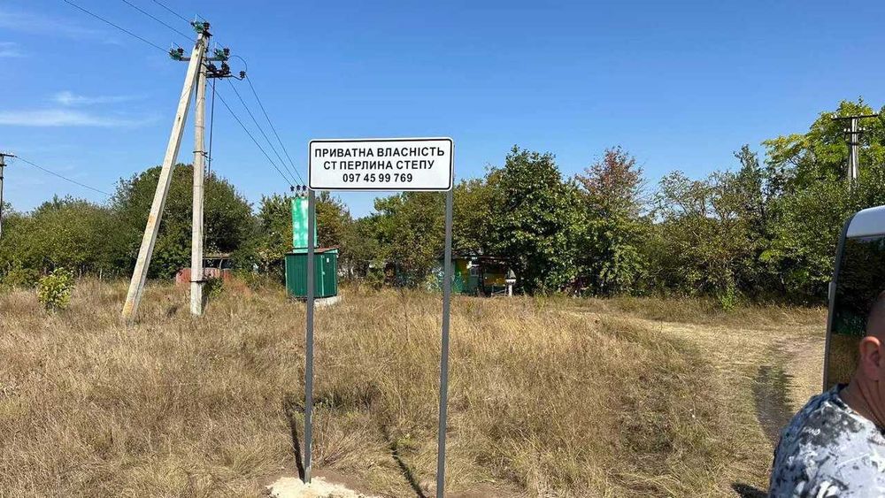 Ділянка 8 соток в садовому товаристві "Перлина степу", Васильківській; Ділянка вісім соток в садовому товаристві " Перлина степу " , поблизу Василькова. Кутова, заїзд з двох боків. Чудовий краєвид на так звані Васильківські Карпати. На території СТ є колодязь . сусіди користуються. Власна підстанція, з електрикою. Стовпи біля кожної ділянки. Неподалік " Мисливські угіддя". Райцентр з відповідною інфраструктурою. ВІд супермаркету, що у центрі- хвилин десять на авто, пів години на веліку. Асфальтована дорога , потім грунтовка вздовж кукурузного поля. Земля у приватній власності. Оформлена у державного нотаріуса. Цільове призначення пройшло уточнення у кваліфікованого землевпорядника з реєстрацією у Фонді.; кадастровий номер: В наявності