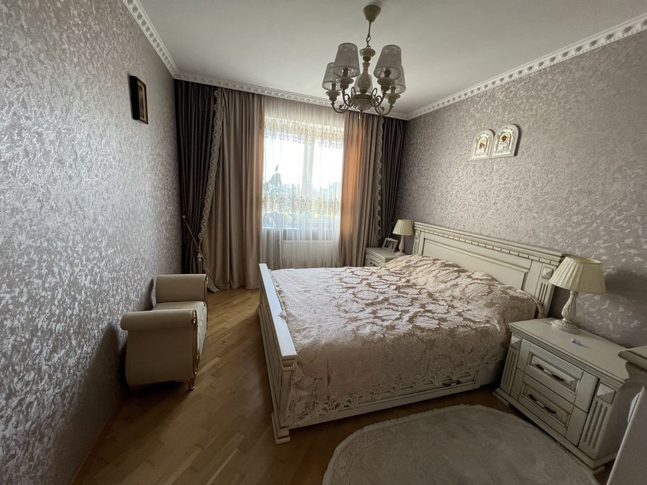 Квартира з ремонтом; Продається простора 3 кімнатна квартира, у новобудові, загальна площа 75 кв.м., на 5 поверсі, 6 поверхового цегляного будинку, утеплена. Якісний будинок, грубі стіни, 70см, на фото видно. Район Чернишевського, неподалік нова лінія. Євроремонт якісний, з меблями, кухня вмонтована дубова, спальня дубова, італійська плитка, тепла підлога. У Ванній плитка та сантехніка італійська, по кімнатах дубовий паркет, мраморні підвіконня, вікна REHAU. міжкімнатні двері- дерево, автономне опалення, котел VAILLANT. Ліфт.