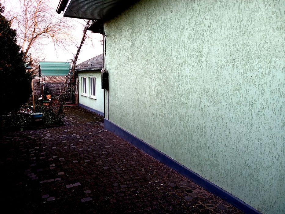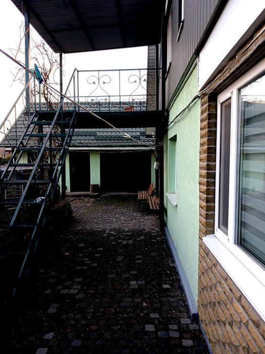 Просторий двір викладений бруківкою, є два гаражі,один з яких прилягає до центральної дороги(альтернатива для СТО,шиномонтажу,магазину)погріб, літня кухня,альтанка з мангальною зоною,господарські споруди,