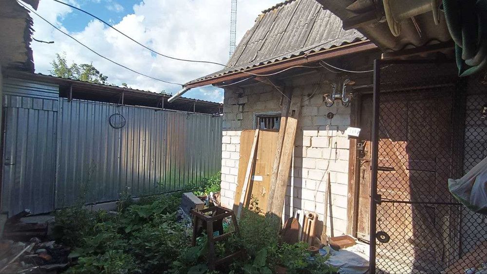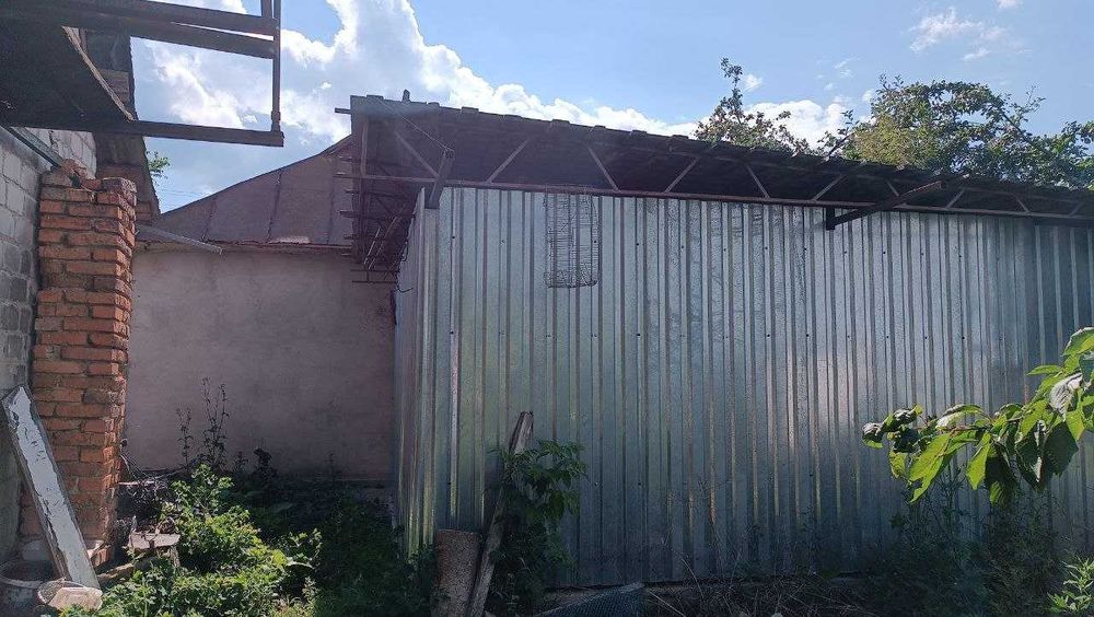 Є двохповерховий сарай\хлів з панельним перекриттям і новий металевий дрівник 5х5м на бетонному фундаменті.