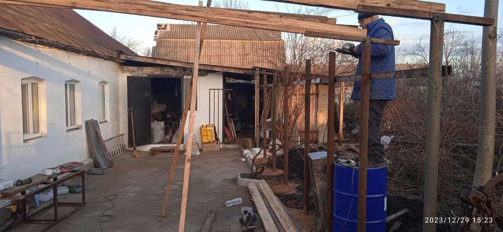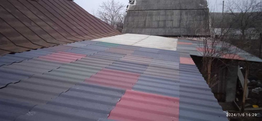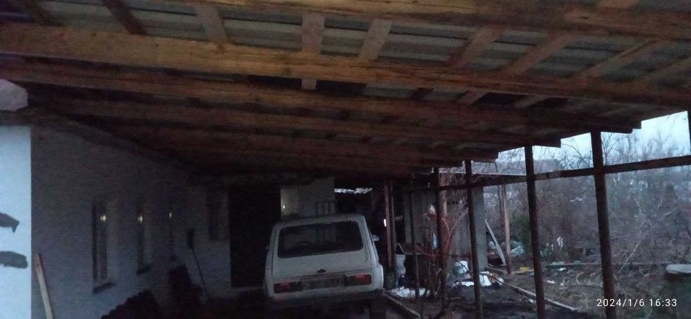 Зроблений дах від віранди до погріба включно, а також навіс від криші будинку на все подвір"я для двох авто.