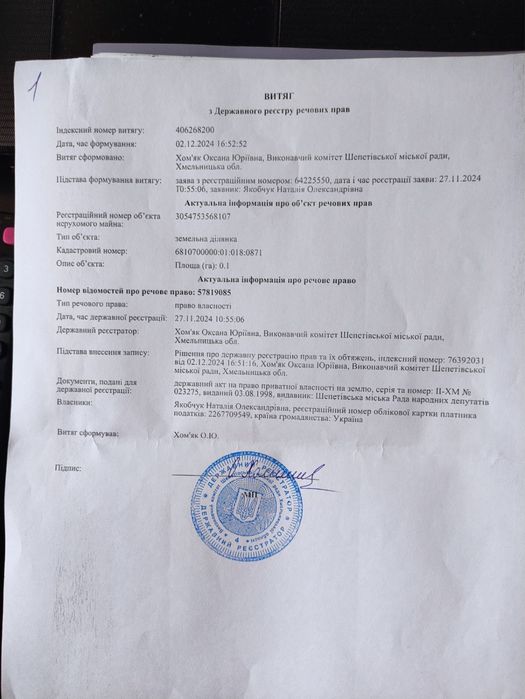 | Земельна ділянка: |