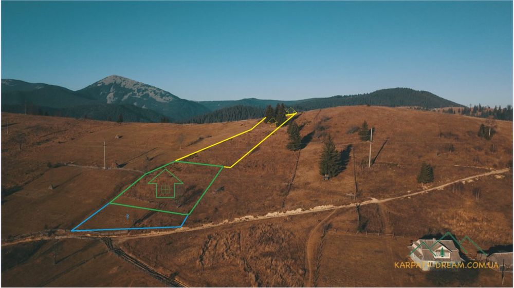 Ексклюзивна ділянка на вершині гори з панорамним оглядом на 360°; Продаються дві суміжні земельні ділянки загальною площею 50 соток у селі Яблуниця.