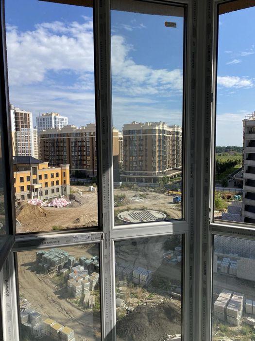 Квартира передається з необхідною базовою комплектацією: вхідні металеві двері, металопластикові вікна, цементно-піщана стяжка підлоги, цементно-вапняна штукатурка стін, точкова розводка електрики, індивідуальне газове опалення з 2-контурним котлом, встановлені радіатори. На кухні та лоджії зроблена водяна тепла підлога. Встановлені лічильники на газ, воду та електроенергію, підведені точки води на кухні та у санвузлах. В даний квартирі зроблена тепла підлога в 2 х санвузлах та в коридорі та кухні ( у забудовника зроблена тільки в кухні)стяжка злоблена у всіх кімнатах. Вид з усіх кімнат на центр містечка ( фонтан)