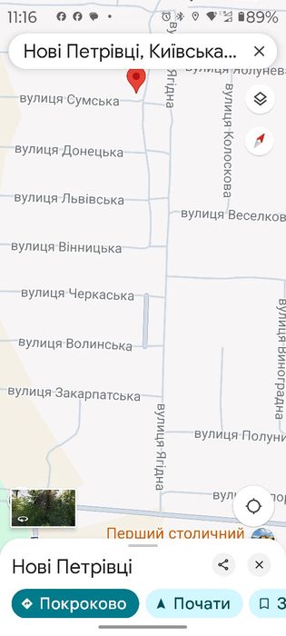 Земельна ділянка під забудову; Продам земельну ділянку з цільовим призначенням під забудову в селі Нові Петрівці на вул. Сумській масив Молодіжний в 9 км від Києва та 14 км від метро Почайна. Ділянка розташована в 15 метрах від асфальтованої вулиці (див. на фото вул.Ягідна) Електрика на вулиці є, газ підключить можливість є. Сусіди навпроти, та поруч забудовані і проживають. Поруч стадіон, поліклініка, хлібзавод, музей-парк діорама Лютіжський плацдарм, магазини та кафе. Шум від траси не чутно. В пішій доступності пляж та ліс.