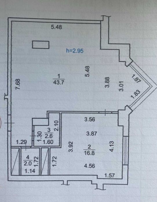 - высота потолка – 3,1 м