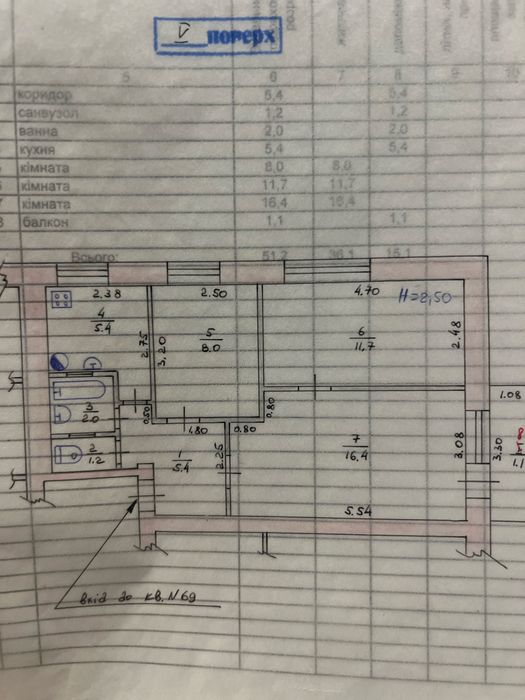 Площа: 3 кімнати ( загальна 51,2)