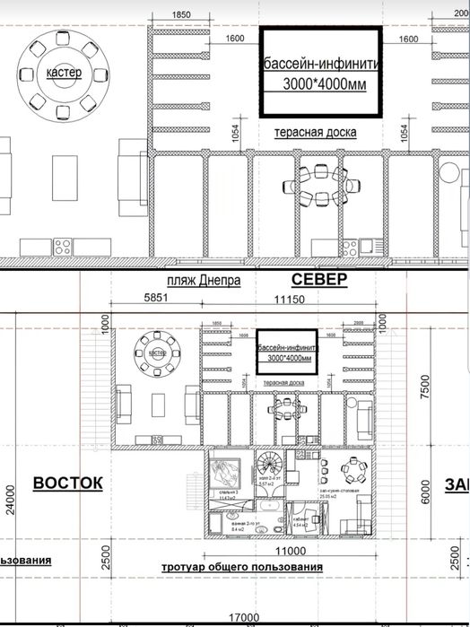 Свайний з/б фундамент та плита з/б на всю площу 11.5м*6.5м + опорна стіна від річки і пагорба.