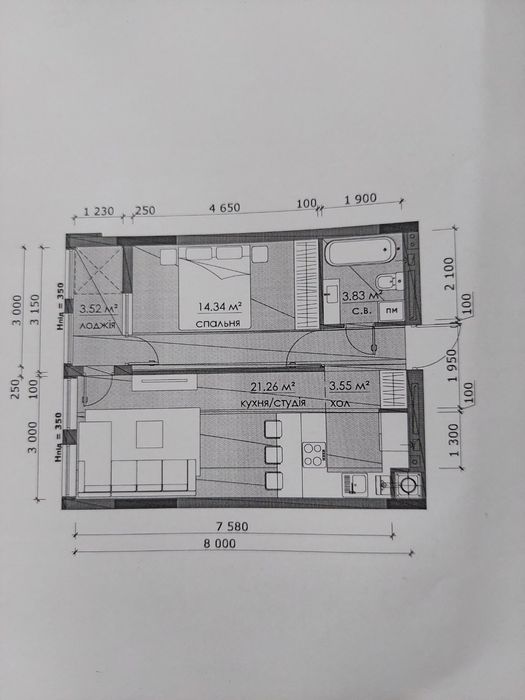 Площа квартири 46,5 м2 з великою кухнею вітальною площею 21 м2. Знаходиться на 2 поверсі з 9, вікна на західну сторону.