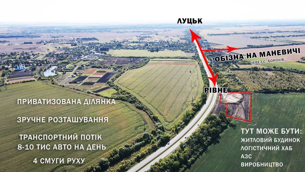 Ділянка може бути цікава для логістики, будівництва АЗС, СТО, Готельно-ресторанного комплексу або житлової забудови.