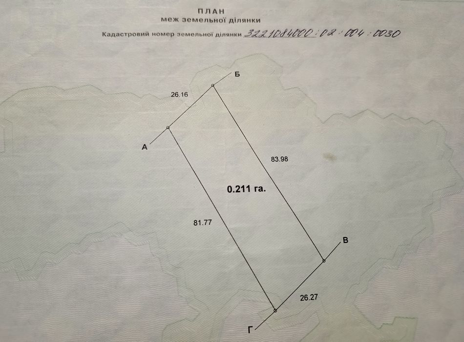 Кадастровий номер: 3221084000:02:004:0030