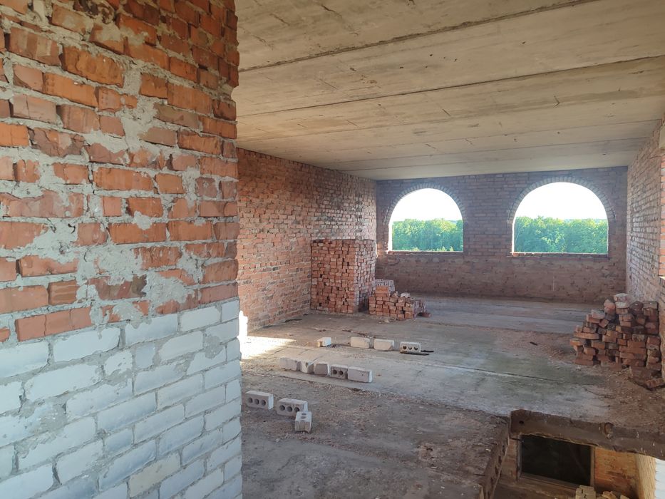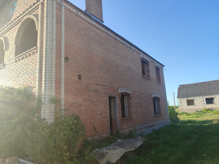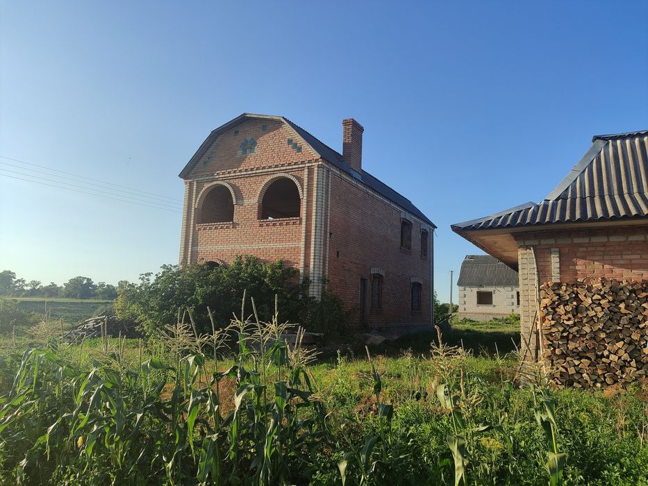 Будинок/коробка двох поверховий; Продається коробка двох поверхового будинку загальною площею близько 120 квадратних метрів. На першому поверсі знаходиться два входи, кухня+велика столова, спальня кімната, санвузол, котельня та тех приміщення під сходами. На другому поверсі дві спальних кімнати та одна велика зала з можливістю встановлення двох великих панорамних вікон. З вікна відкривається чудовий краєвид. Поруч ліс, ставок. До будинку підведено світло, вода та виведено газовий стояк. До міста Козятин 10 кілометрів. В населеному пункті наявний інтернет провайдер. Також є господарські будівлі, а саме: два гаража під легкові автомобілі, літня кухня, кладова, погріб та сарай. Зручне місце розташування. До столиці - 200 кілометрів, до Вінниці, Житомира та Білої Церкви близько 90-100 кілометрів.
