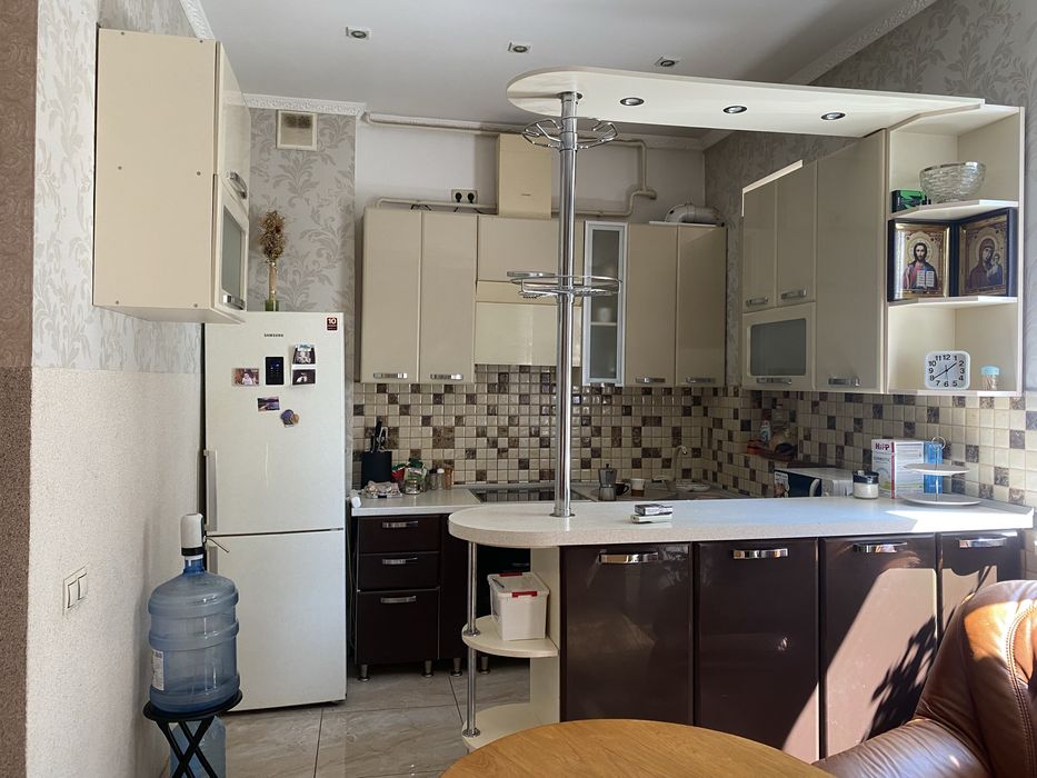 Комплектація: наявний камін (робочий, прочищений), електроплита, посудомийна машина, теплий пол в кухні та ванній кімнаті, датчики температури в кожній кімнаті, кондиціонер в кухні студії, рекупіратори (витяжка) на стелі в спальній кімнаті які підключаються через телефон, мебель.