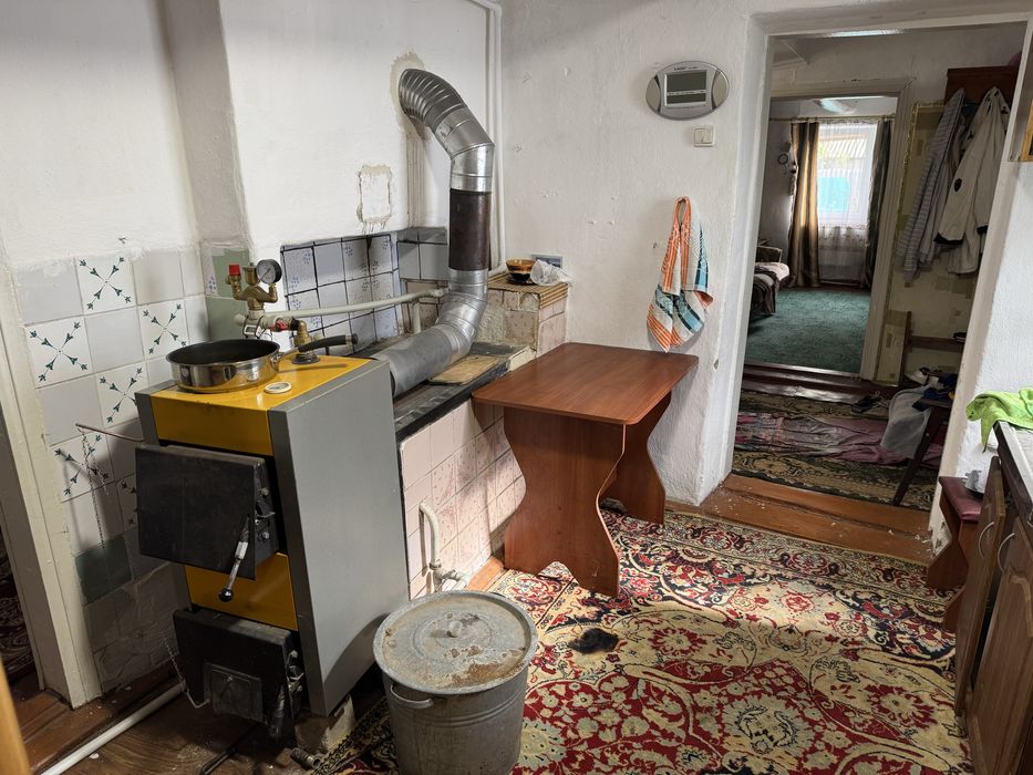 Опалення - твердопаливний котел. Батареї залізні. Дров у дровнику на пів зими. Газ не заведений. Магістраль йде по вулиці.