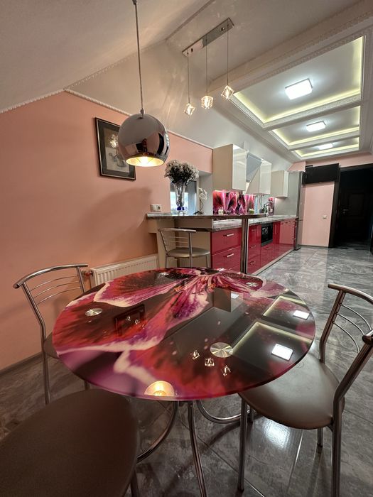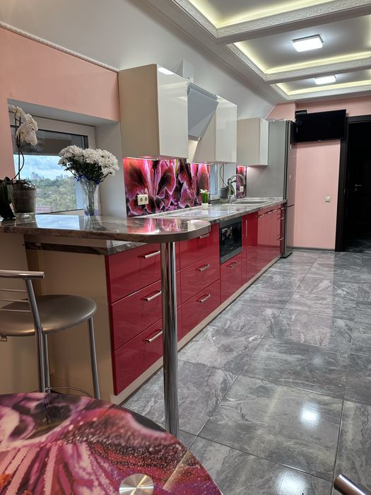 плазма. Велика кухня 17кв.м. Кухня обладнана всією необхідною технікою: холодильник, мікрохвильова піч, варильна поверхня, телевізор, обідній стіл, Квартира обладнана всім необхідним для комфортного життя: нові меблі, двоспальне ліжко, гардеробна з меблями, пральна машина, кондиціонер на холод та на тепло, 2 телевізора, електрична плита, мікрохвильова піч, холодильник. Тепла підлога та окремий лічильник. Будинок утеплений. Зручна транспортна розвʼязка. Найближчі станції метро Деміївська 10 хвилин, Вокзальна 20 хвилин автобусом прямо від будинку. У пішій доступності Супер маркет «Фора».