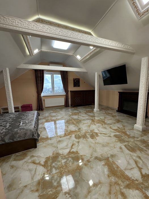 Солом'янський; Оренда Господар 1-к Київ центр квартира вул. Монтажників; Пропонується в оренду від власника без комісії сучасна однокімнатна нова квартира 62 кв. м., з дизайнерським євроремонтом в приватному будинку, з чудовим видом на Київ. Простора світла. 3 поверх вхід окремий. Переважно для пари чи однієї людини. Цент Киева, Ботиева гора, улиця Монтажників. - Простора житлова кімната 35 кв.м. У кімнаті велике двоспальне ліжко, комод, кондиціонер, камін, куточок відпочинку