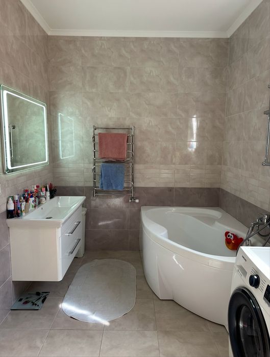 •опалення - двоконтурний газовий котел (батареї в кімнатах, тепла підлога в коридорі, кухні та санвузлі)