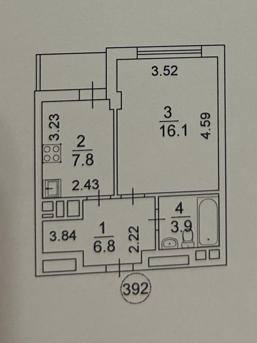 Загальна/житлова/кухня 36/16/8.