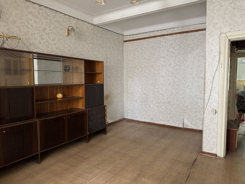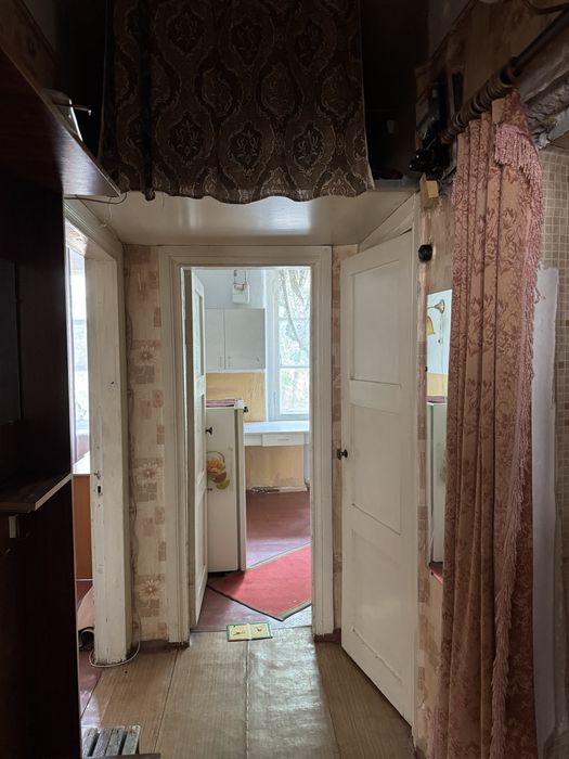 У квартирі коридор, 2 окремі просторі кімнати, туалет, кухня і засклений балкон. Високі стелі, товсті стіні - все те, за що нам подобаються будинки такого типу.