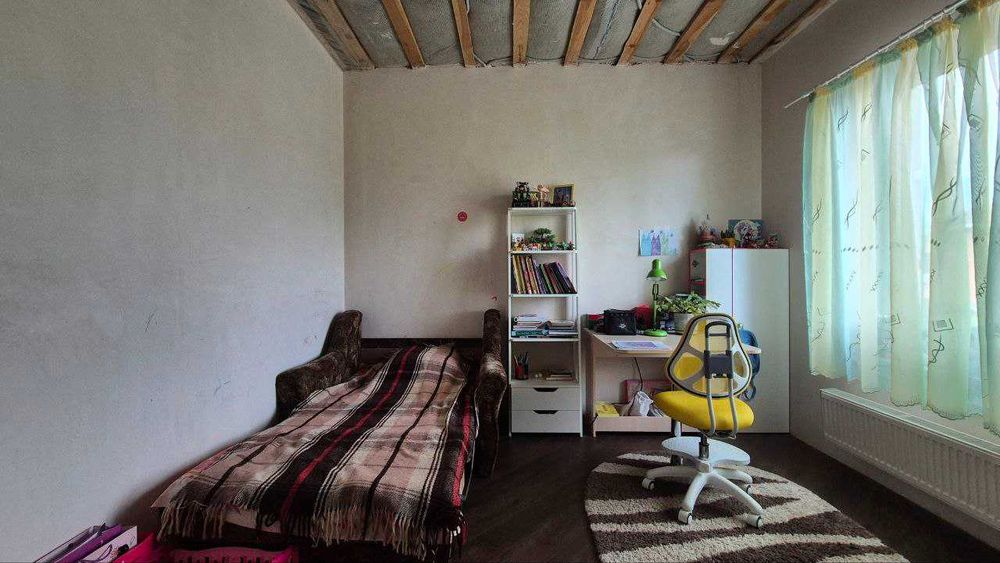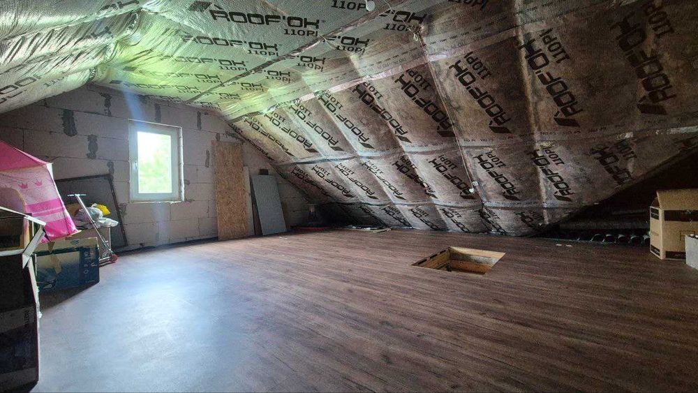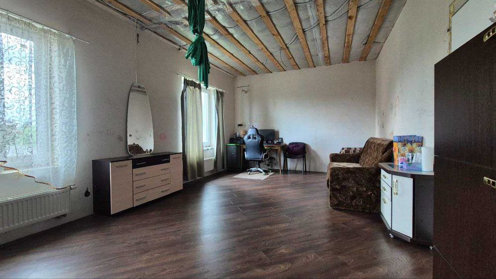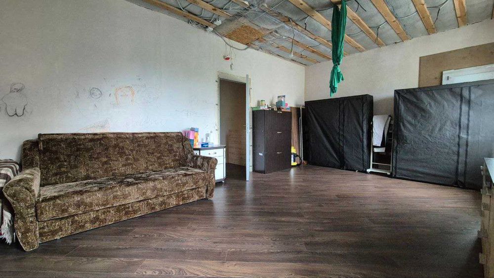 В будинку облаштований мансардний ярус для зберігання речей – 50 кв м. Він утеплений, сухий, є підлога, розкладні горищні сходи.