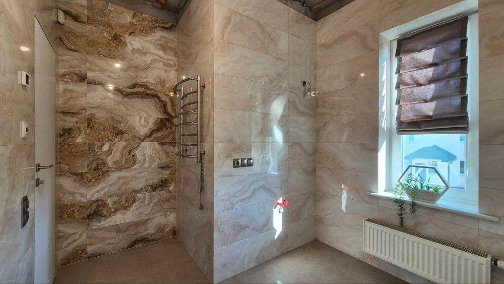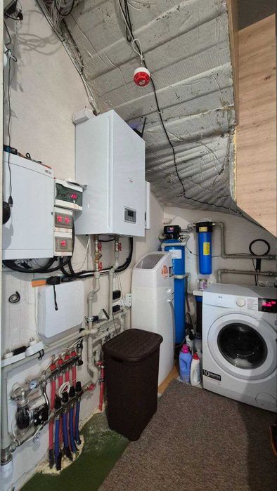 - встановлено електрокотел 12 кВт та автоматизоване водяне опалення з розведеними по будинку радіаторами (загалом 7 радіаторів), енергозберігаючою теплою водяною підлогою в зоні кухні та вітальні. А також по нижньому периметру французьких вікон, які виходять на терасу – в підлогу вбудовано додатковий також водяний радіатор, щоб запобігти запотіванню вікон. У санвузлі 2-го поверху – функціонує окрема електро-підлога з автоматичним програматором;