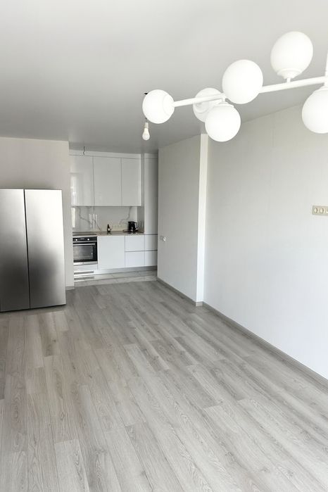Многофункціональна зручна кухня не займає простір кухні-студії. Кухня виконана на замовлення з стільницею із камню, з дорогим, якісним профілем та фурнітурою та має всю необхідну техніку: варильна поверхня, духова шафа, посудомийна машина, подвійна раковина, змішувач з довгим виливом, система фільтрації води.