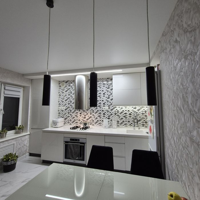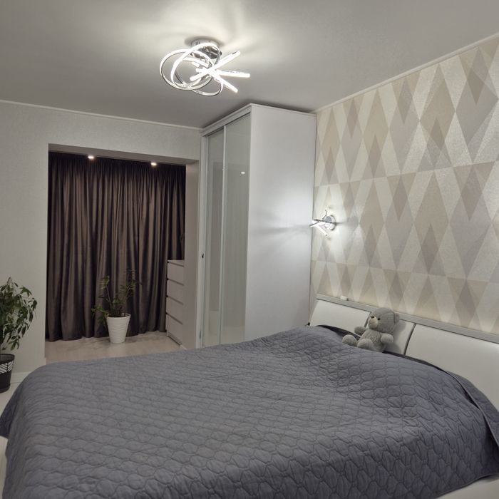 * Сучасний дизайн: Інтер'єр квартири виконаний в єдиному стилі з використанням світлих тонів та акцентів, що створюють відчуття простору та затишку.