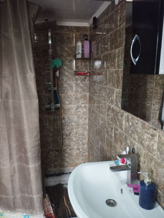 У кімнатах та коридорі ламінат.кухня,сан вузол та веранда оздоблено сучасною плиткою.