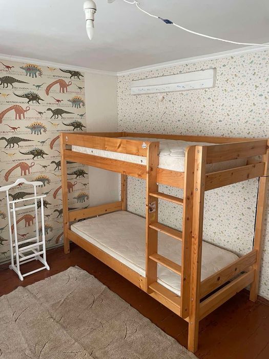 В будинку дві окремі кімнати ( дитяча з двоповерховим ліжком) та спальня з двоспальним ліжком