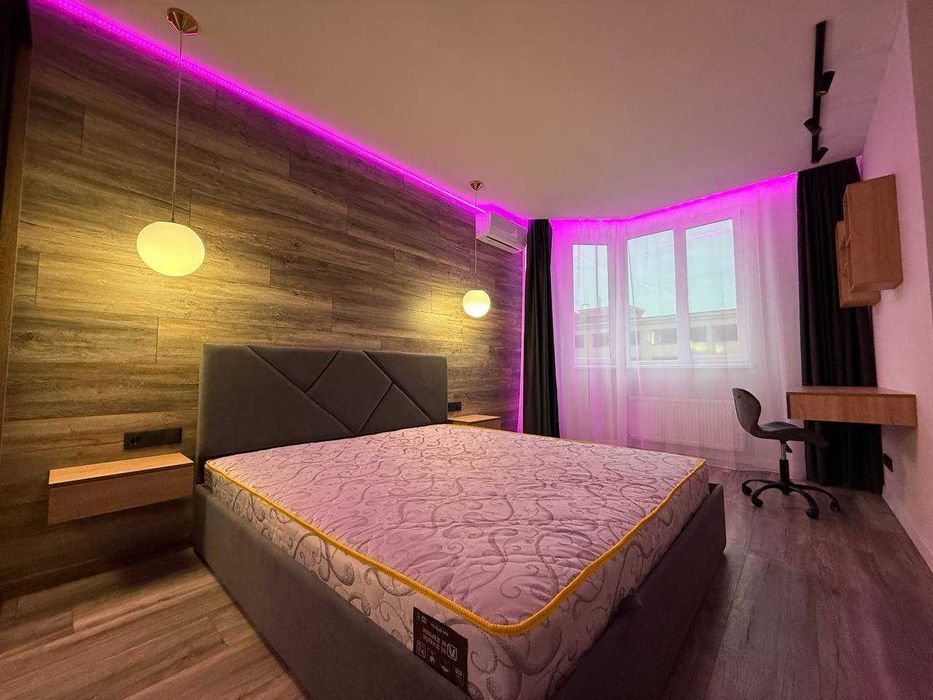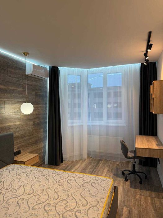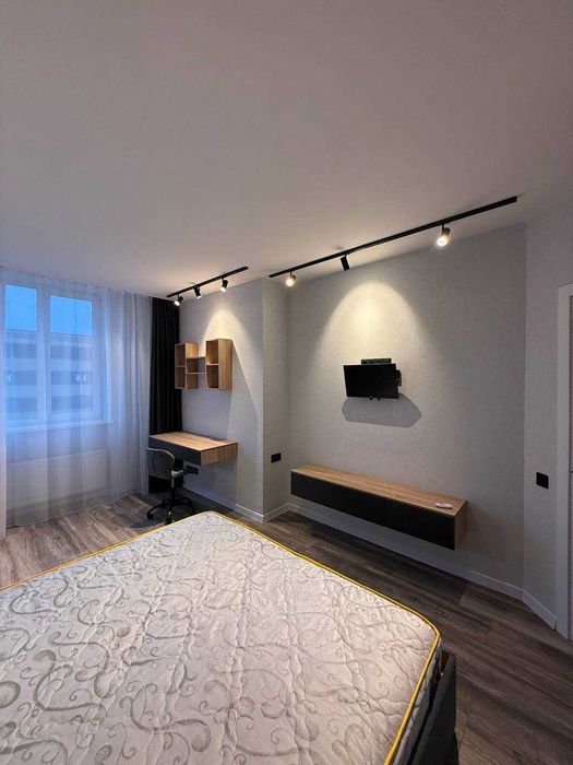 Спальня: великий шафа-купе, письмовий стіл, кондиціонер, телевізор, blackout-штори, різні варіанти освітлення.