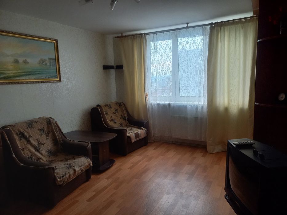 Деснянський; Здам 1-кімнатну квартиру на Троєщині Деснянський р-н; Здам 1-кімнатну квартиру на Троєщині, Деснянський р-н, пр. Червоної Калини,70 поверх 24. Будинок з генераторами: завжди є вода, опалення, ліфти. Квартира з ремонтом кімна 20 кв.м, кухня 10 кв. м, передпокій 9 кв.м, кладовка, загальна площа 50 кв.м, санвузл об'єднані, великій балкон, бронедвері Квартира тепла, чиста, охайна; здається з меблями, електроплита, холодильник, болер. Зручне пряме транспортне сполучення м. Лісова, Чернігівська, Почайна, гір. електричка. Поруч супермаркети, школа, дитячий садок, майданчики, аптеки; тихий двір. Транспортна розв'язка на всі напрямки міста. Без посередників. Власник. Вільна! Торг! т.06******25