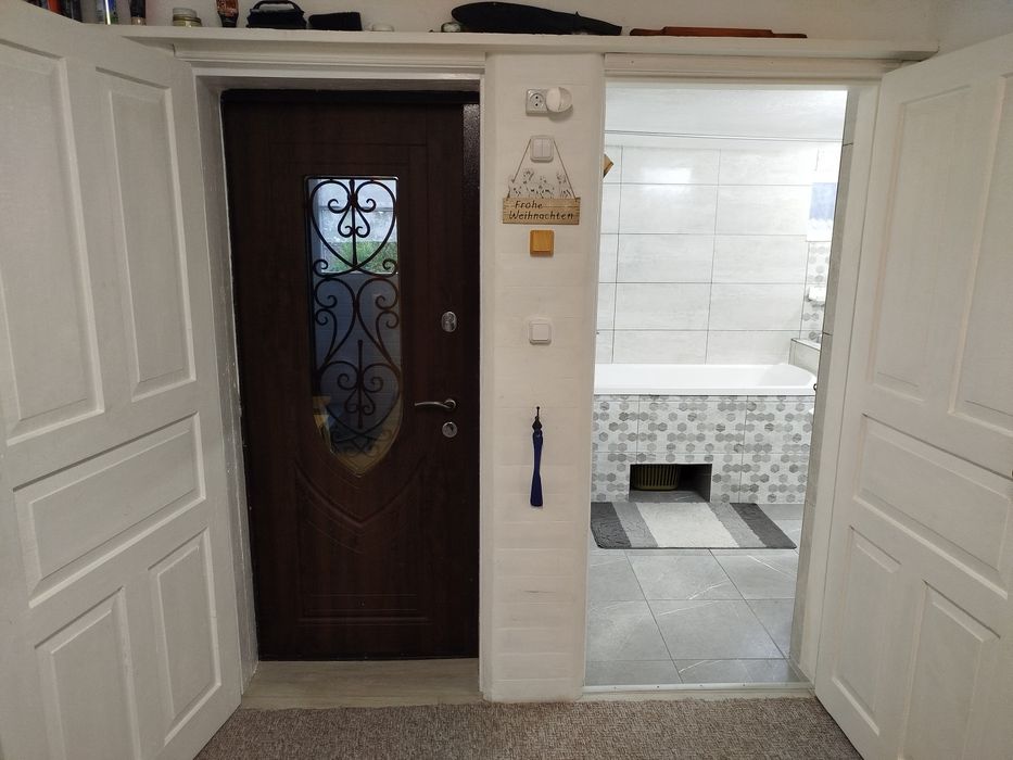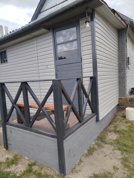 4,1 ( фактично 4,5) сотки землі. Будинок з терасою, броньовані двері, 57м.кв, 3 кімнати (одна прохідна), металопластикові вікна, підлога плитка та ламінат. Усі зручності. Э газ, ел. енергія, водопровід, гаряча вода, ванна (теплі поли), туалет, каналізація. Опалення газове (котел), але є і пічне. Є можливість добудови.