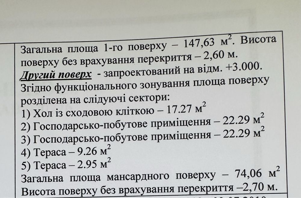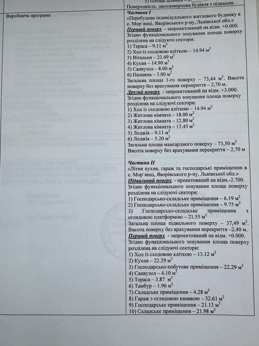 1 поверх площа - 73,44м2, 2 поверх - 73,5м2, житлова площа 133,37м2.