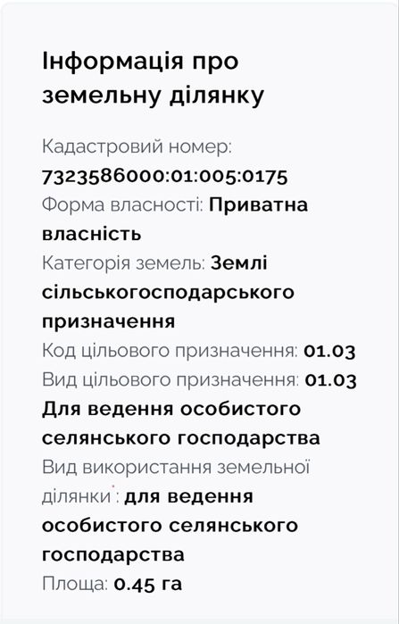 | Земельна ділянка: |