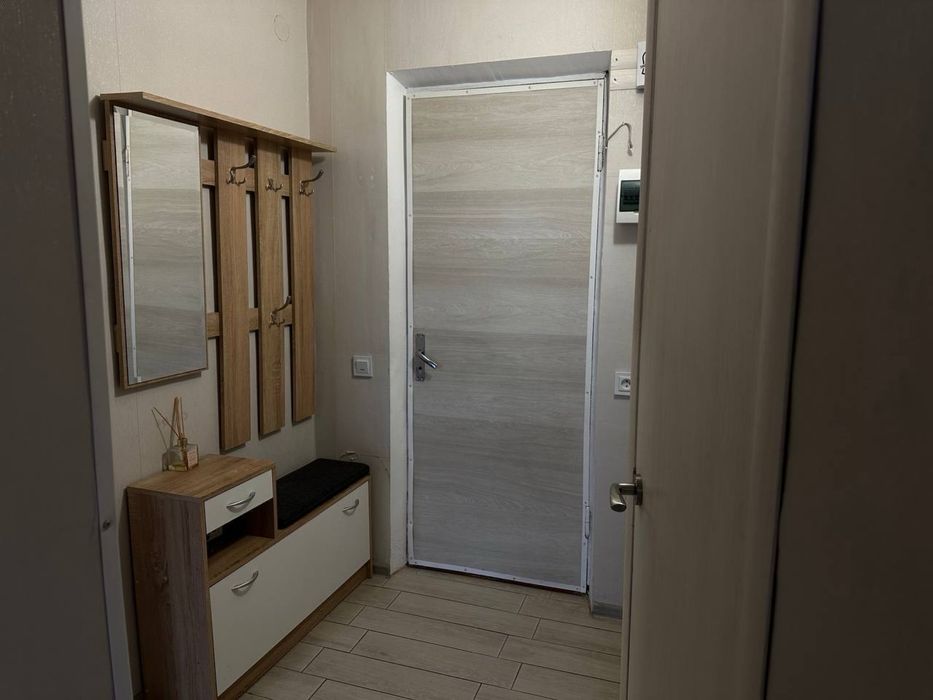 • Євроремонт, повністю мебльована (велике двоспальне ліжко, шафа-купе, обідній стіл, стільці, комод, тумбочка).