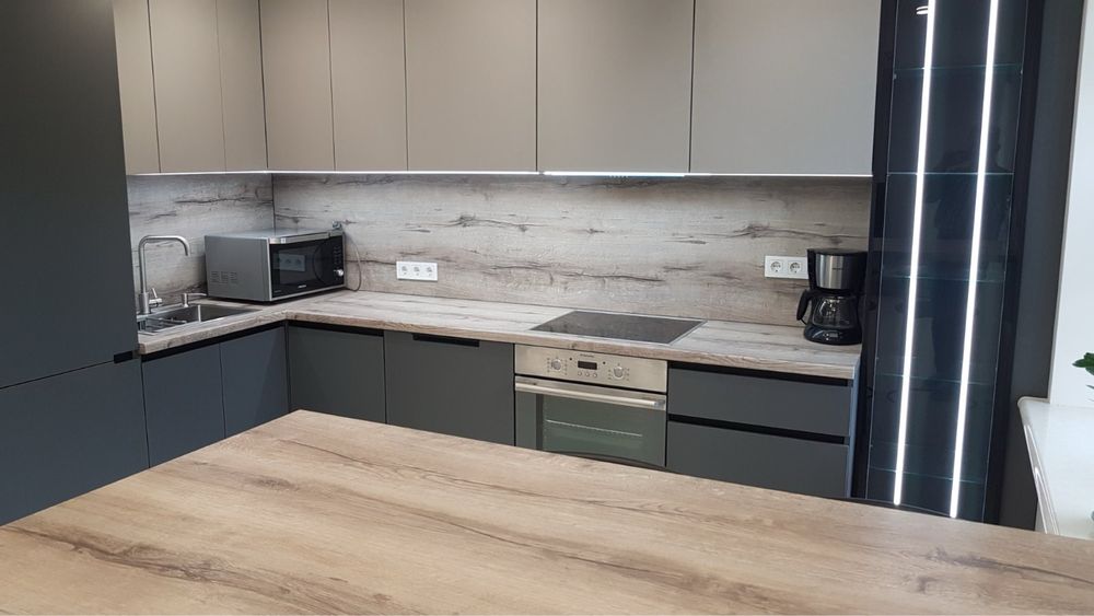Пралька з сушкою, великий 2-м холодильник, індукційна поверхня, кавоварка, великий смарт ТВ.