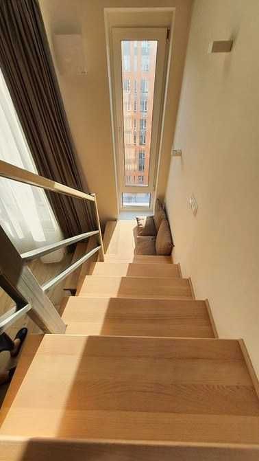 Дніпровський; Оренда 2-рівневої квартири в ЖК «Комфорт Таун»; Здається простора двоповерхова квартира з дизайнерським ремонтом у ЖК Комфорт Таун. Повністю укомплектована сучасною технікою Samsung: телевізор 65’’, посудомийна машина, пральна машина із сушкою, мікрохвильова піч, холодильник. У квартирі красиве освітлення, зручне планування та просторе двоспальне ліжко.