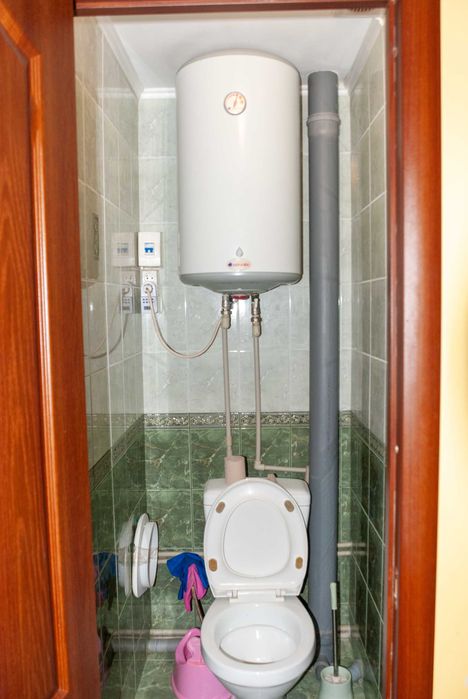 Горячая вода: электро-бойлер на 80л, работает, обслужен.