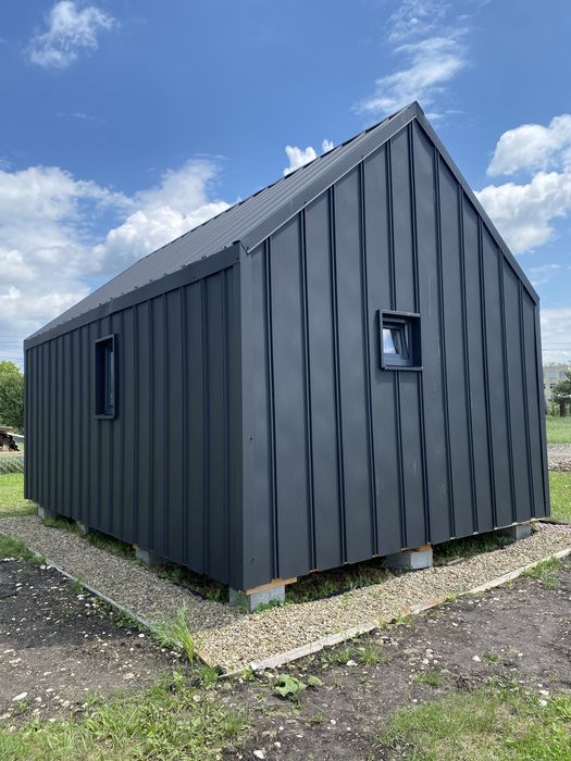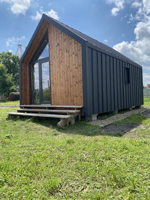 Продається готовий модульний будинок 25 кв.м., готовий до заселення; Продається новий модульний будинок 25 м² (4 × 6,3 м) + спальне місце під дахом 2 × 3 м.