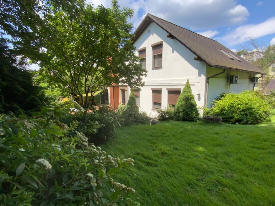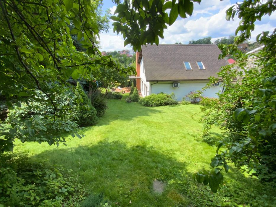 У будинку 5 кімнат:кухня -їдальня - 24м, вітальня - 30м, спальня господарів (з окремою гардеробною) - 36м, дитяча - 24м, гостьова - 20м, кабінет - 12 м, санвузли - 12 м та 6 м. Підлога скрізь, де плитка - керамограніт - з підігрівом. У санвузлах плитка Villeroy&Boch. В усіх кімнатах натуральний дубовий паркет. Кондиціонери Daikin (охолодження та підігрів), великий камін на кухні. Захисні металеві автоматичні ролети на всіх вікнах. НОВА сауна Harvia на дровах з окремою душкабіною в цокольному поверсі. Опалення - ГАЗ, котел - Vaillant + бойлер Vaillant - 150 л. Сантехніка -Grohe, Blanko, Kolo, велика посудомийна машина Wirpool, пральна - AEG, потужний стабілізатор напруги, вода - міський водопровід, але із артезианської свердловини.Сигналізація, тривожна кнопка ДСО. Автополив та дорогий ландшафтний дизайн усієї ділянки. 20- річні величезні дерева, зокрема, туї та блакитні ялини.