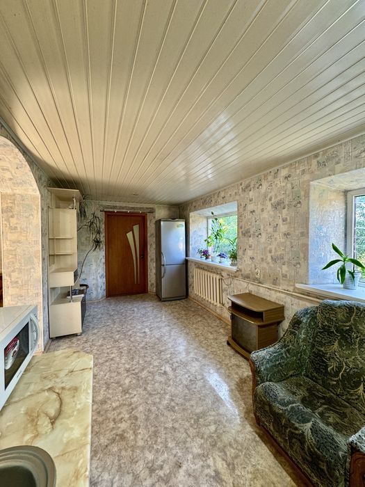 Отдельное здание времянки: 3 комнаты (кухня с плитой, спальня и общая комната). Также с мебелью. Отопление проведено, но под восстановление)