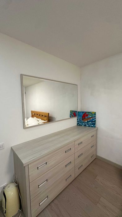 Залишається кухня (з посудомийкою і газовою піччю), 1 бойлер, 1 ліжко, 1 комод, 1 розсувна шафа, меблі на вході. (Холодильник, пральна машина і кондиціонери - вже забрані, сейф буде забрано).
