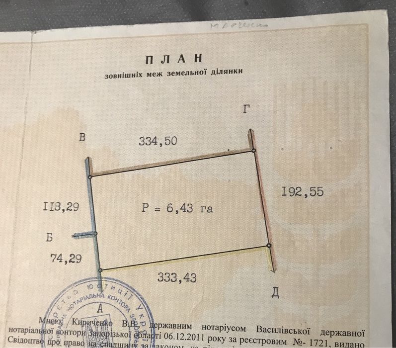 | Земельна ділянка: |