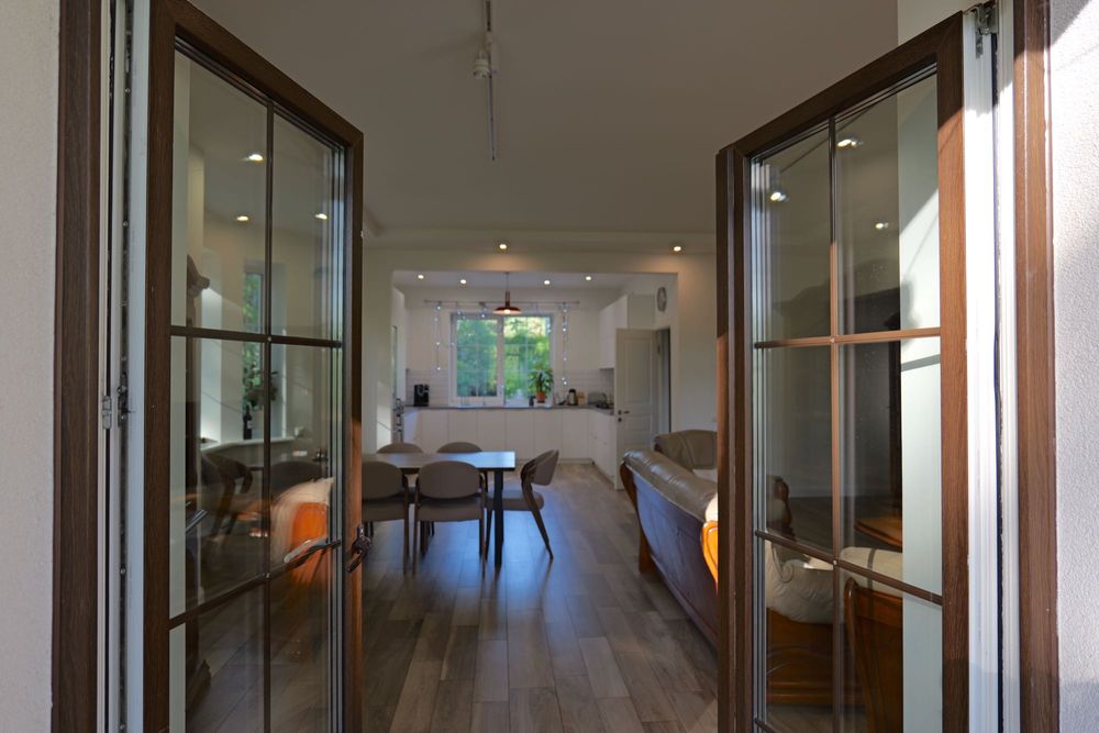 Більше 1га власної території соснового лісу створює одночасно відчуття простору та приватності. Вам не потрібно навіть виходити за межі територіі, щоб прогулятися лісом. Тут безпечно, бо дім розташовується в елітному районі, а терирорія та будинок під охороною. Є відеонагляд.