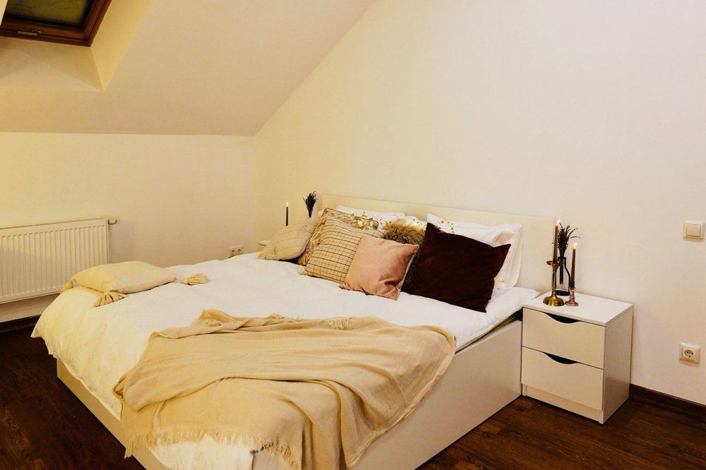 Дім має 300 квадватних метрів, є 4 спальні з двоспальними ліжками та 3 санвузли з душовими кабінами. В головній спальні є своя ванна з джакузі. Тепла підлога на ВСЬОМУ першому поверсі.