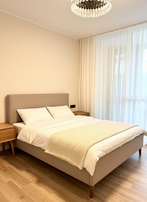 Нове двоспальне ліжко з артопідичним матрасом, велика шафа , приліжкові тумбочки, телевізор .