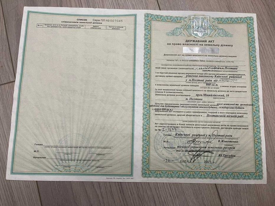 | Земельна ділянка: |