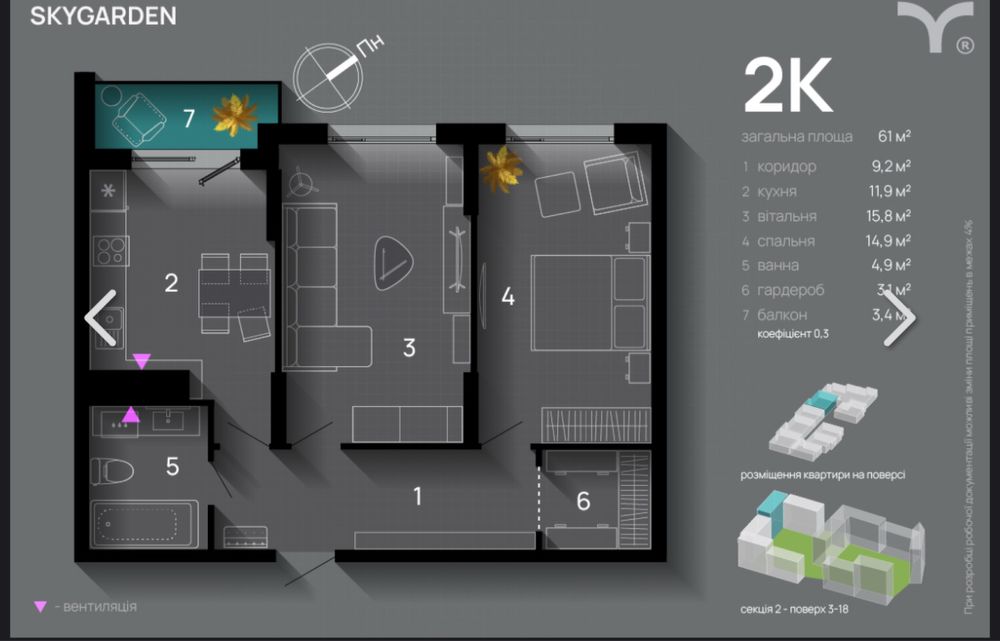 Власник, продам 2х кімнату квартиру ЖК SkyGarden; Продам/обміняю власну 2х кімнатну квартиру у житловому комплексі SkyGarden (скайгарден).